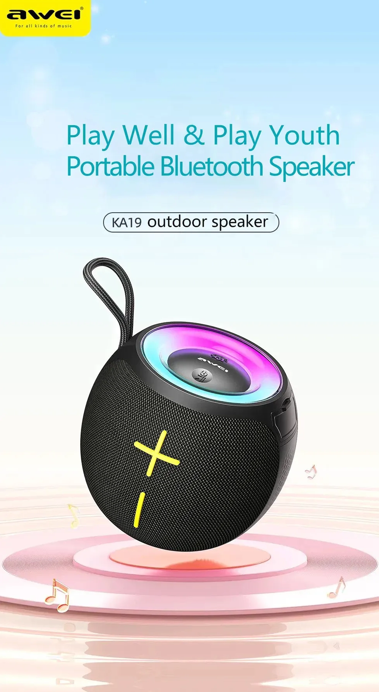 Elevate Your Audio Experience with the Awei KA19 Portable Bluetooth Speaker:Immerse yourself in rich, powerful sound wherever you go with the Awei KA19 Portable Bluetooth Speaker. This compact and versatile speaker packs a punch, making it the perfect companion for outdoor adventures, poolside parties, or simply enjoying your favorite tunes at home.