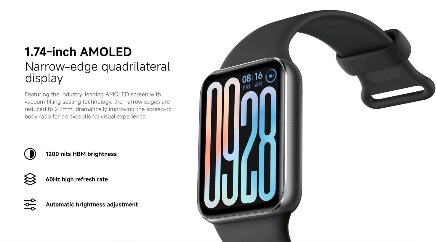 – Vivid Display: 1.74-inch AMOLED screen with a 60Hz refresh rate. Brightness up to 1200 nits for excellent outdoor visibility. 336 x 480 resolution